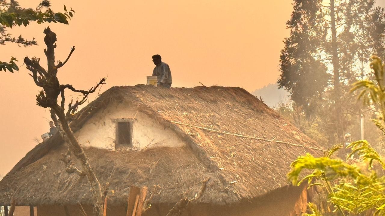 युवालाई दमाहा बजाउने कला सिकाइँदै