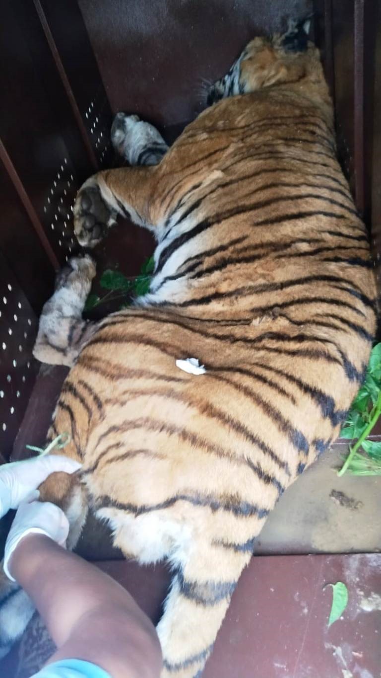 गाउँ पसेको पाटेबाघ नियन्त्रणमा
