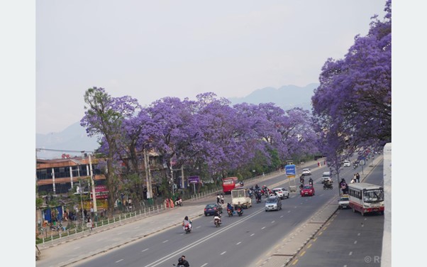 Blooming jacaranda trees adorn Ring Road in Lalitpur