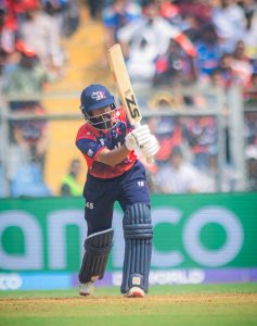 कप्तान रोहित पौडेल ७ बलमा १ चौका सहयोगमा ५ रन बनाउँदा म्याथु फोर्डको बलमा एलबीडब्लु धरापमा परे।